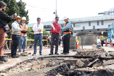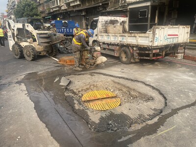 - 【新北市訊】板橋區縣民大道三段32號前道路今(14)日中午發生台電孔蓋突發性隆起及爆裂情形,影響範圍約長、寬各2公尺,新北市政府工務局副局長林炳勲第一時間會同養工處趕赴現場勘查,並責成台電公司立即調派機具搶修路面,預計今日下午6時前完成修復作業,以降低對交通衝擊。