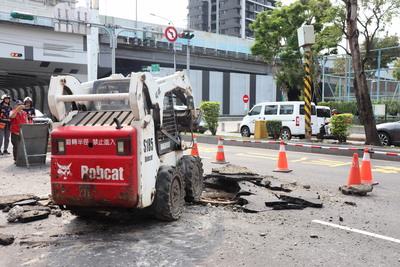 板橋縣民大道三段路面突爆裂隆起 工務局責成台電調派機具修復