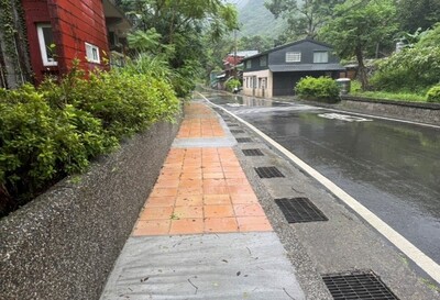 4.改善成果:人行道改善長度105.6公尺(含高壓磚、透水磚、抿石子坡道) 。
