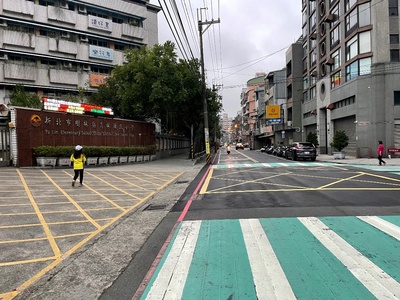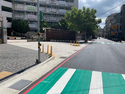 二、改善效益:- 原校方前人行道鋪面為磁磚,且因年久損壞採用補丁方式,磁磚面層如遇下雨易打滑,學童及輪椅通行皆屬不易,且無設置符合規範之無障礙斜坡道。經改善後調整路緣高低差並新設無障礙斜坡,使整體人行道空間更為友善。
