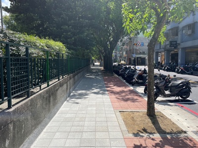 三、改善範圍及成果:1.育林國小前人行道(復興路390巷至八德路),人行道改善總長度約160公尺,校門地坪改善面積約636m²。